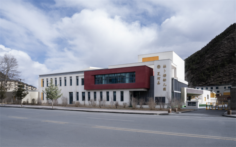 夏河縣門乃合幼兒園坐落于甘南藏族自治州夏河縣核心區(qū)域,南臨大夏河,總建筑面積9710平方米。項目由甘肅省工程勘察設(shè)計大師、甘肅工程咨詢集團(tuán)總工程師馮志濤領(lǐng)銜,帶領(lǐng)建筑創(chuàng)作中心青年骨干設(shè)計師組成項目團(tuán)隊,歷時三年精心打造而成。