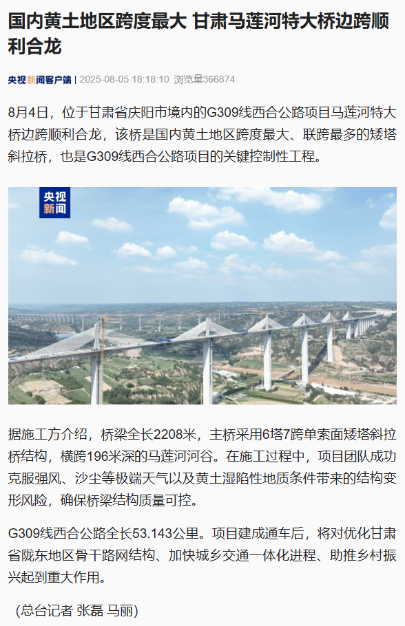 近日,由甘肅工程咨詢集團(tuán)旗下省交通監(jiān)理公司承監(jiān)的G309線西合公路項目建設(shè)取得重大進(jìn)展——馬蓮河特大橋邊跨順利合龍。項目建成后,將進(jìn)一步完善區(qū)域路網(wǎng)結(jié)構(gòu),對促進(jìn)慶陽地區(qū)經(jīng)濟(jì)社會發(fā)展具有重要意義。