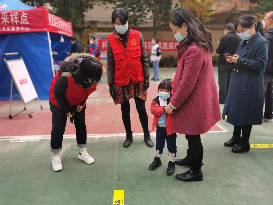 號令一出,不到半個小時時間,300多人的志愿隊伍已組建就緒。當天下午,第一批志愿者隊伍,統一身穿紅馬甲,佩戴口罩,迅速奔赴南關夜市、伊真大廈、五泉街道、外國語中學等多個檢測點開展志愿服務。而女志愿服務者則更成為了深秋季節疫情防控一線最靚麗的一道風景。“您好,請提早打開微信健康出行碼”“請大家不要扎堆聚集,按照1米線要求,有序排隊”“請黃碼人員、老人、孕婦和小孩走綠色通道”……一聲聲溫馨提示,一次次貼心攙扶,都是她們最溫情的守護。