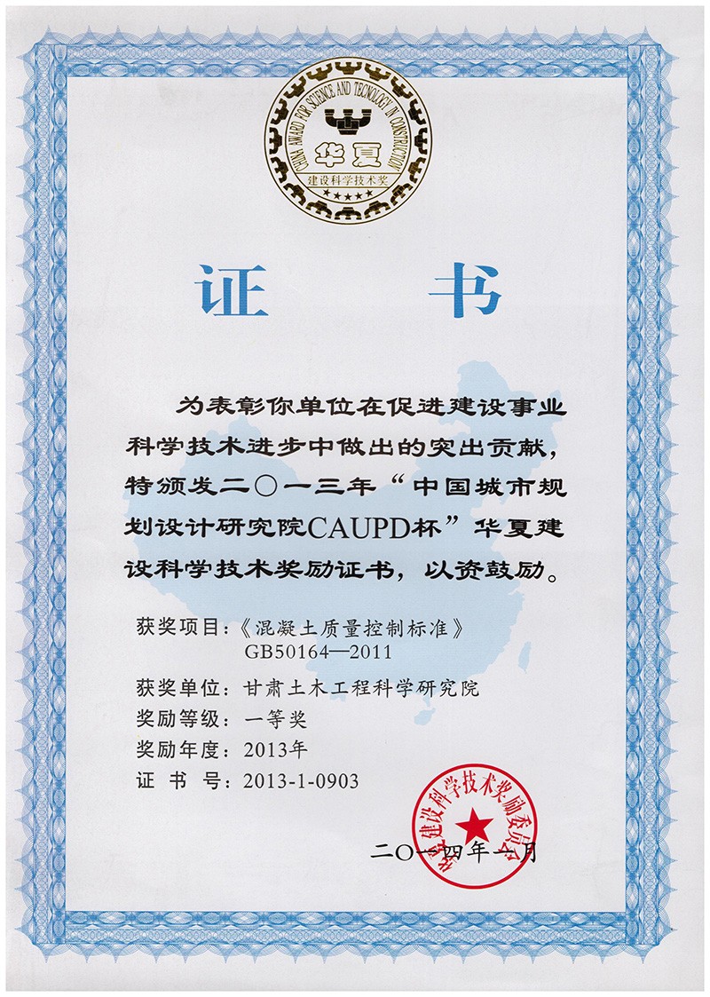二0一三年“中國城市規劃設計研究院CAUPD杯”華夏建設科學技術獎